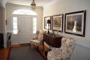 Carolina Trace, Sanford NC is spotlighting a 3,029-sf golf home with an inviting open floor plan and 4-BRs/3.5-BAs. Listed at $330,000, this residence has hardwood floors in the master suite and the living room plus a gas log fireplace, built-in cabinets that include a bar area, tray ceiling and French doors that lead to the sun room.