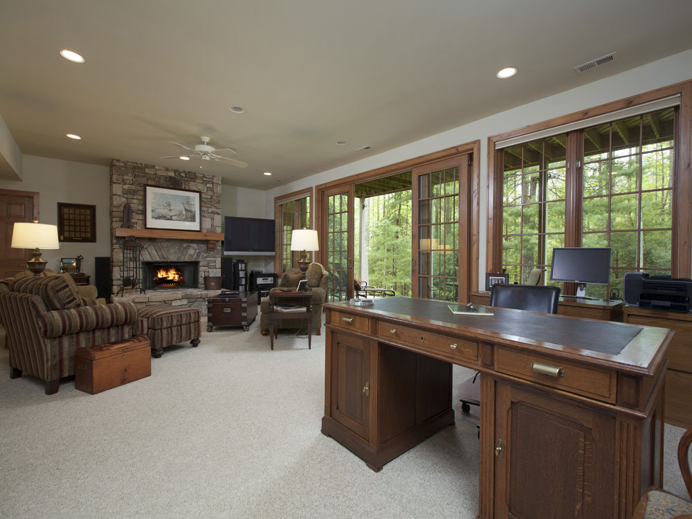 There are two bedrooms on the main level and an attractive walk-out lower level with second stone fireplace. Inviting screened porch and flat backyard is ideal for gardening. Golf membership and furniture package available at some additional cost. Listed now at $595,000. Send me more information about Champion Hills!