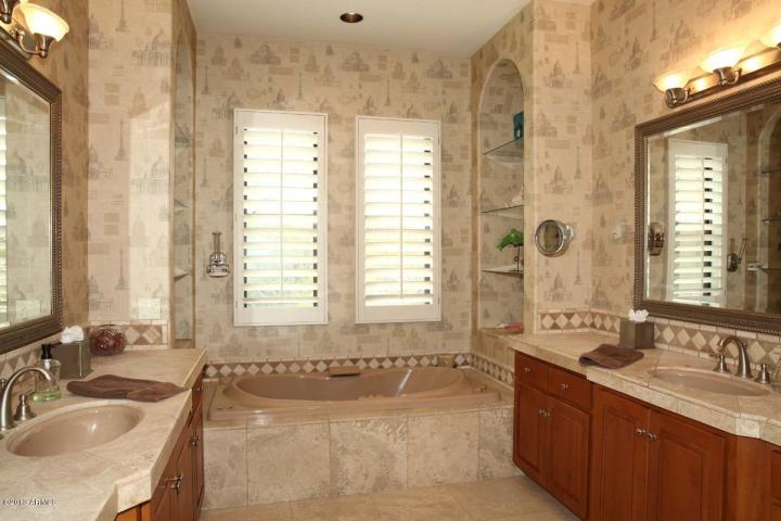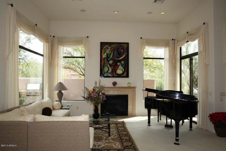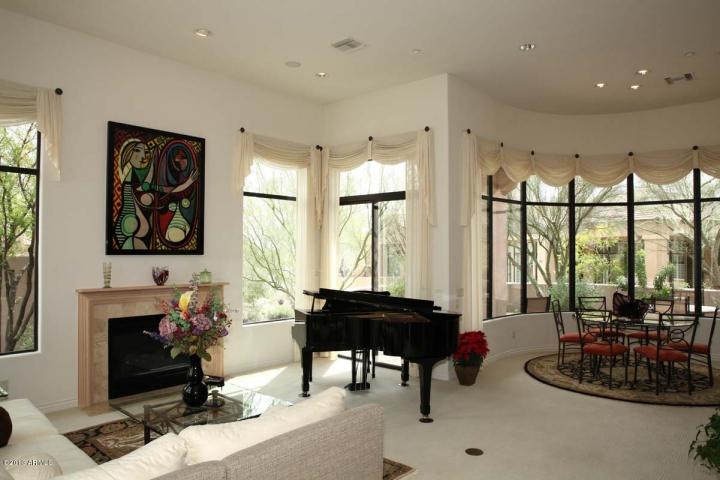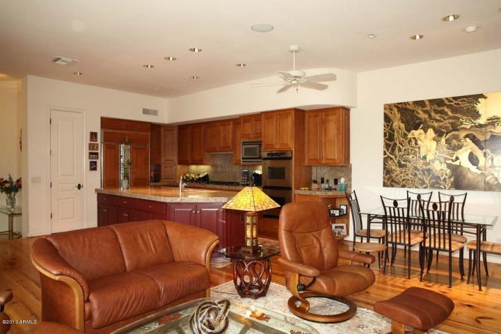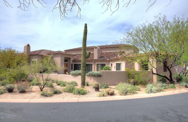 DC Ranch, Scottsdale AZ has a select listing at 9280 E Thompson Peak, a distinctive 3-BR/2.5-BA villa with prime mountain views for $899,000. This custom home, newly re-roofed, has a formal living room with fireplace and 12-foot ceiling. The dining area features dramatic curved windows and recessed lighting.