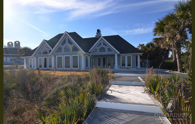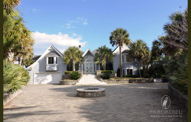 DeBordieu, Georgetown SC presents a 5-BR/4-BA oceanfront home on a full acre of land at 293 Pioneer Loop. This home’s private, gated entry features a circular driveway highlighted with a decorative fountain. The open, oversized living room, dining room, kitchen and family room capture ocean views.