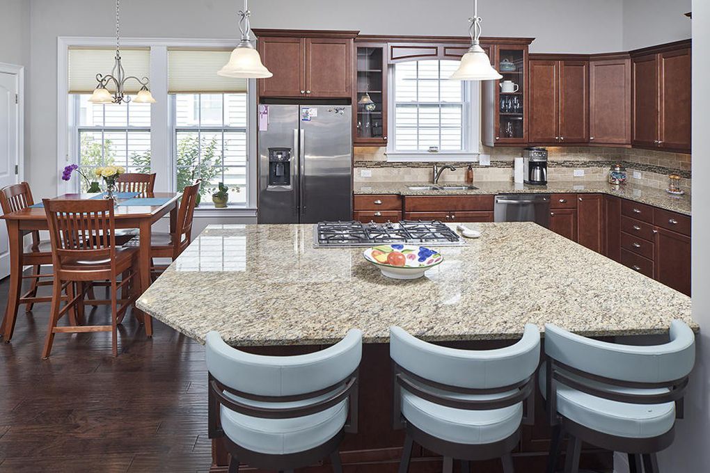 - Kitchen w/ granite countertops, stainless steel appliances, double wall ovens