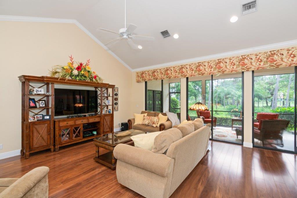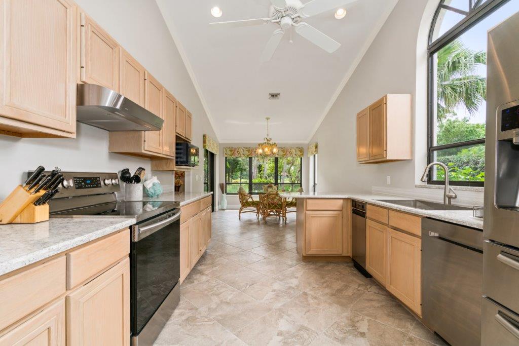 This 2,400-sf San Remo Collections home at 1596 Sweetbay Circ is located within the private community of Harbour Ridge Yacht & Country Club in the Sweet Bay Village neighborhood. Take in views of Hole No. 11 of the Pete Dye-designed River Ridge golf course and entertain in style with a renovated kitchen, new appliances and A/C.