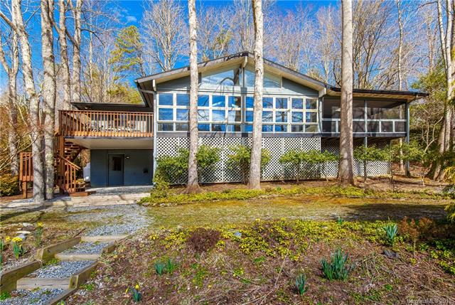 This lakefront home at 182 Echota Ln overlooks Lake Ticoa in the mountain golf and lake community of Connestee Falls in Brevard, NC. It lies along a quiet street and includes 100-plus feet of lake frontage and a dock.