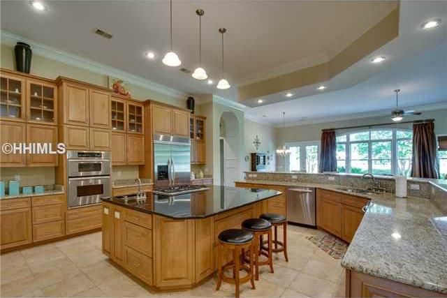 - Chef’s kitchen with two dishwashers, oversized island and gas cooking range