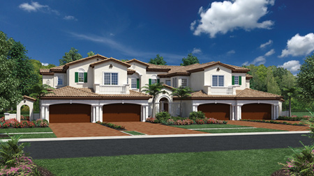 Jupiter Country Club, Jupiter FL is featuring the Genova 3-BR/2-BA Carriage Home with three half-baths and a 2-car garage. This 2,650-sf residence features an entry way and two-story foyer that opens to a generous study with access through double entry doors. The formal dining room is accessible from the great room and gourmet kitchen and has views and access to the covered lanai.