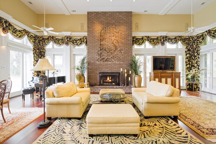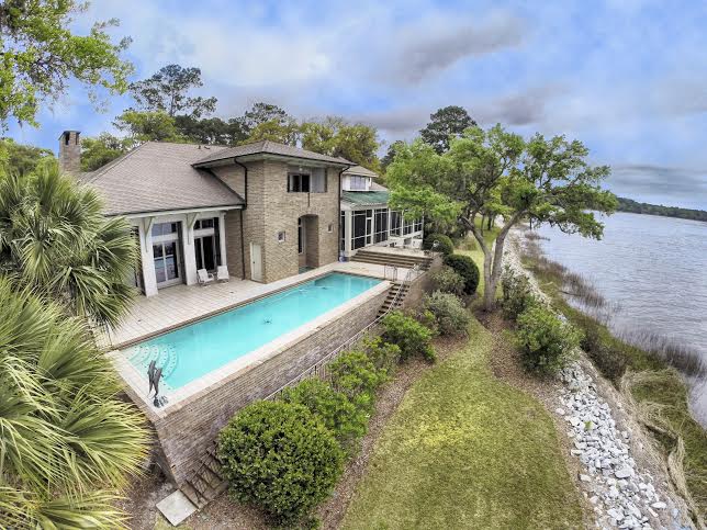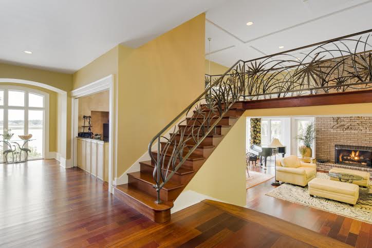 The Landings on Skidaway Island, GA is featuring a grand estate home at 13 Log Landing Road, with Intracoastal Waterway frontage and 6,676 sf of living space. An entry foyer grounded by gleaming hardwood floors and custom wrought iron lead to a mezzanine level.