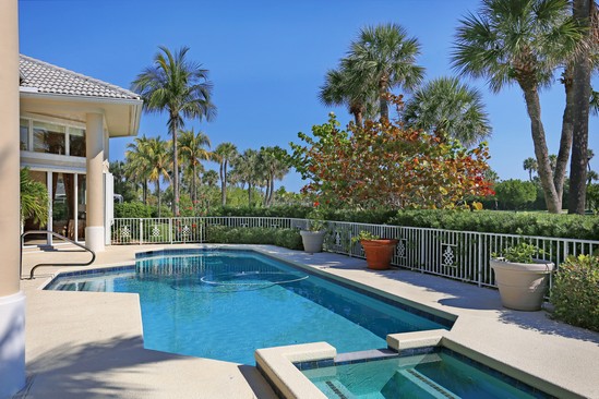 The island kitchen has been completely redone with granite counters, maple cabinets, Wolf appliances and a Miele dishwasher. The gas-heated salt-water pool has an adjoining Jacuzzi and cabana bath. Listed at $1,675,000. Send me more information about Sailfish Point!