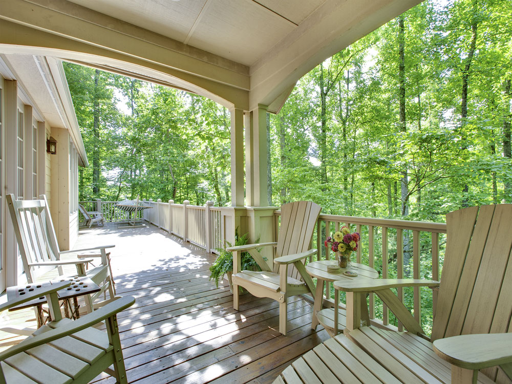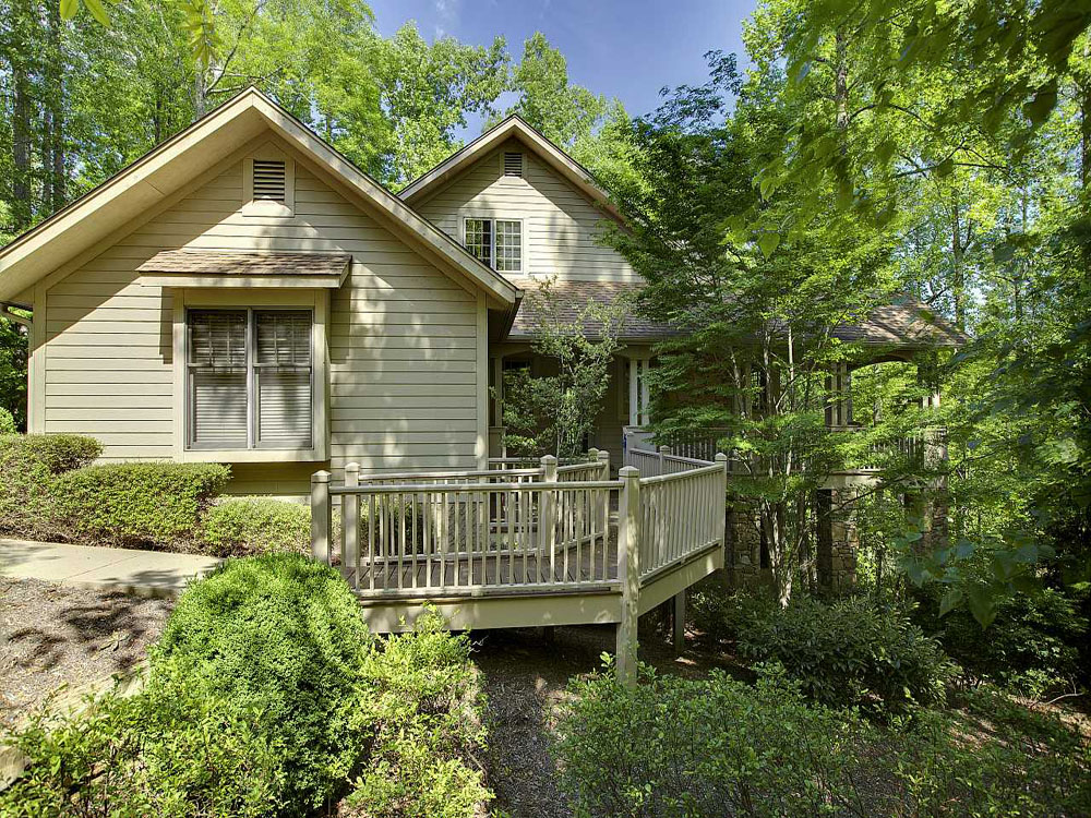 Champion Hills, Hendersonville NC features a 4-BR/3.5-BA home at 202 Bent Pine Trace. This 2,980-sf residence on a wooded lot has an open layout with stone fireplace and access to several outdoor decks. Master suite is on the main level and there is plenty of space for entertaining throughout.