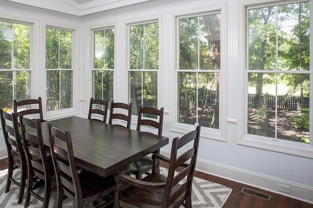 Situated in the Center Park neighborhood, this 2,676-sf home is on a tree-lined street and backs up to a picturesque pond and the island’s nature and trail system.