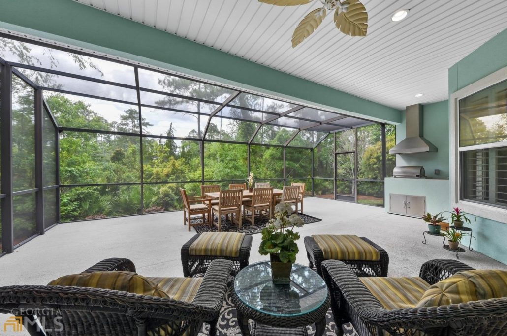 Sliders from the living area open to a screened lanai with Summer Kitchen with natural-gas grill and sink.