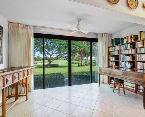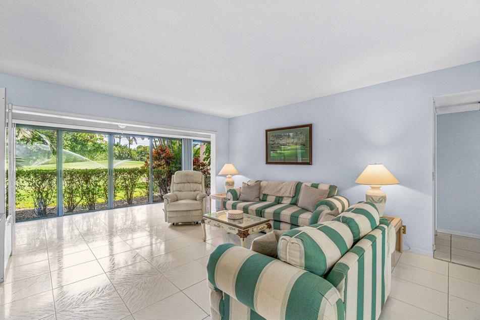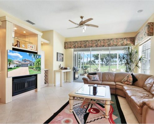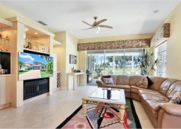 Featuring 3BRs/2BAs, this spacious home looks onto the 11th green of the community’s Golden Marsh golf course.