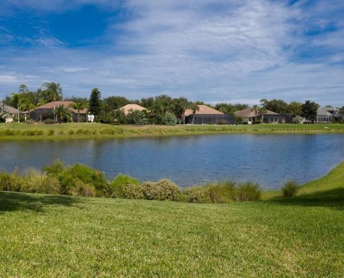 Fine homes enjoy water and golf course views.