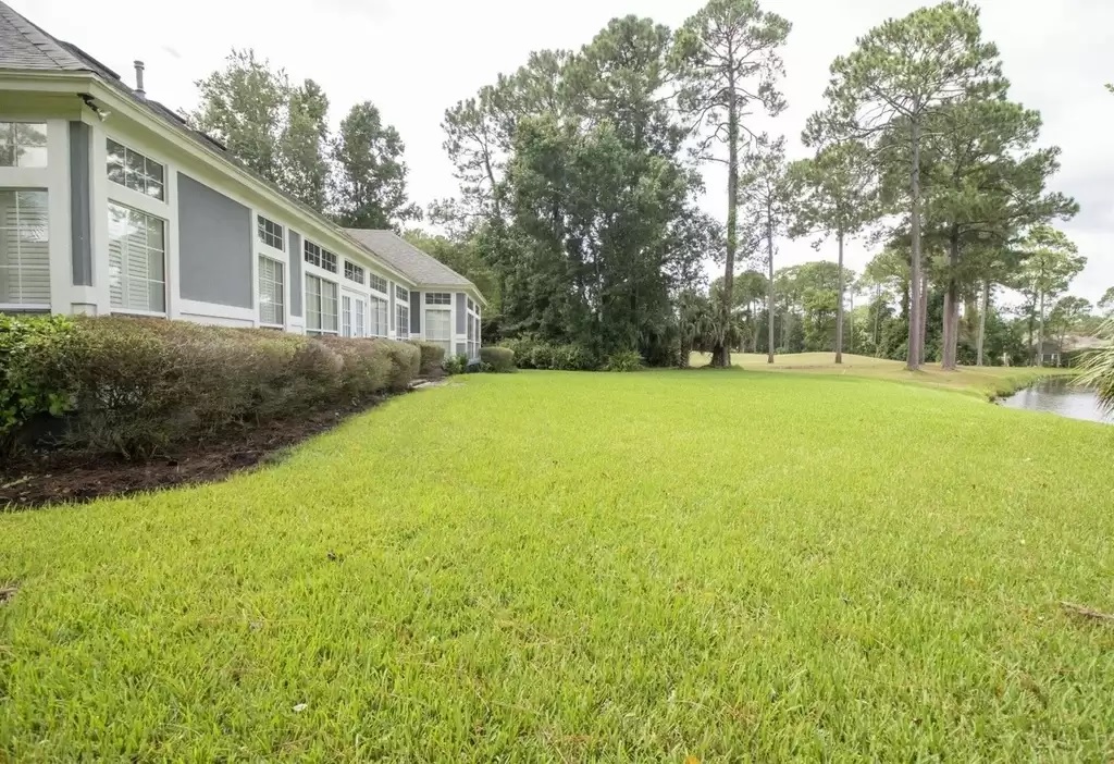 The home’s spacious yard offers lake and golf views.