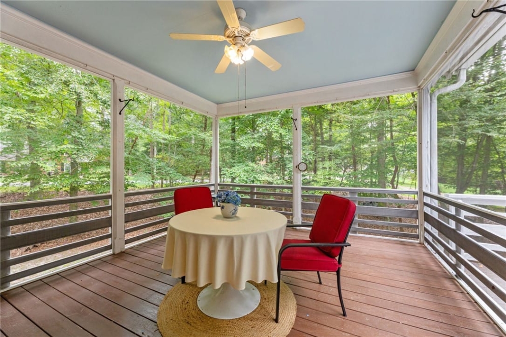 The home’s quiet setting includes a spacious deck.