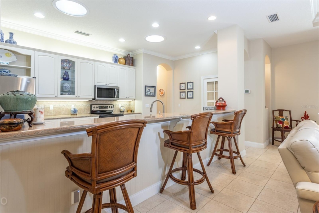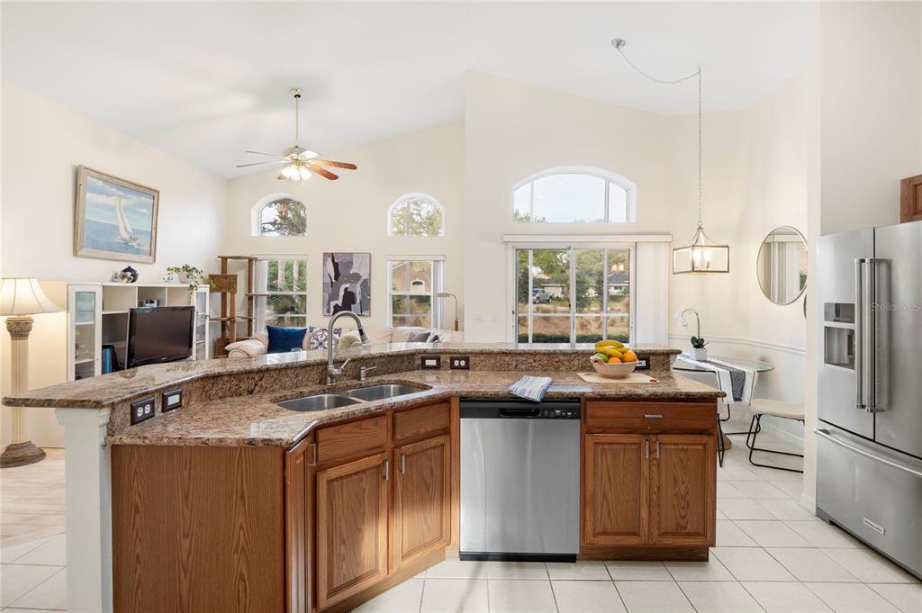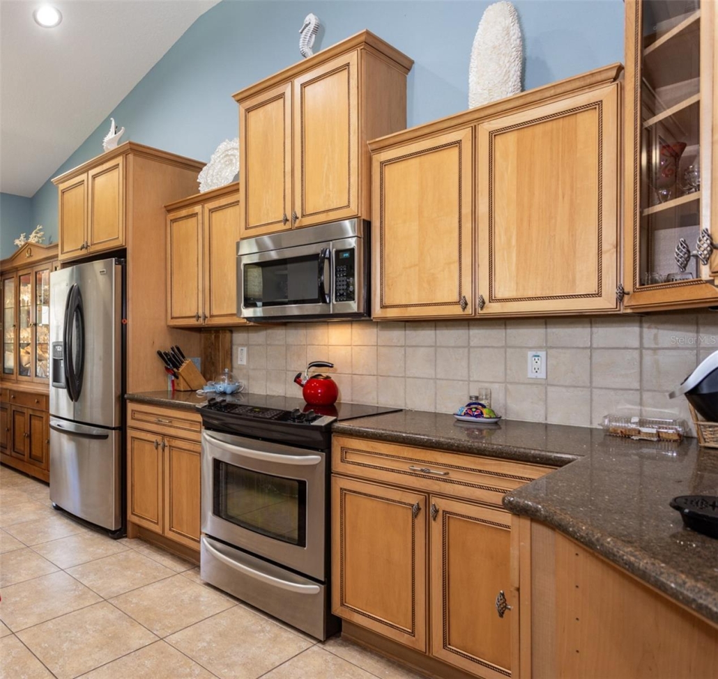 - Kitchen w/ granite counters, stainless steel appliances, pantry