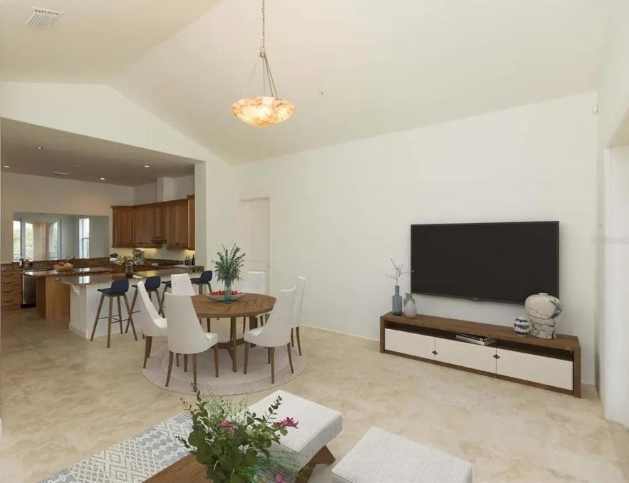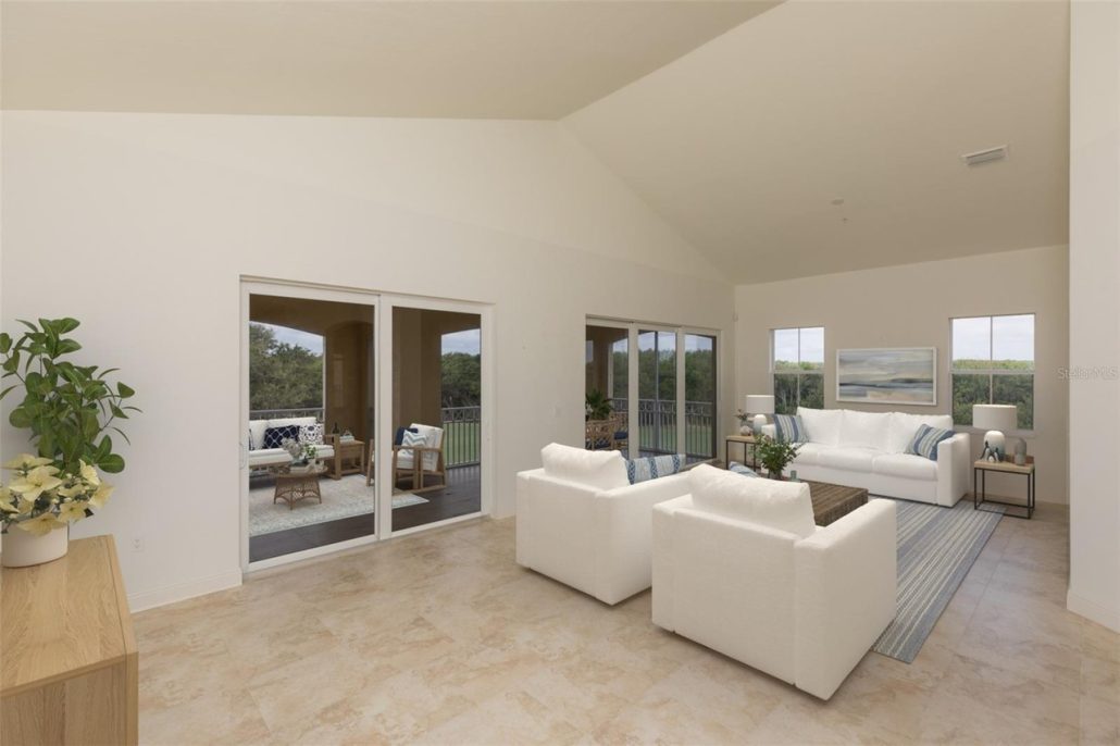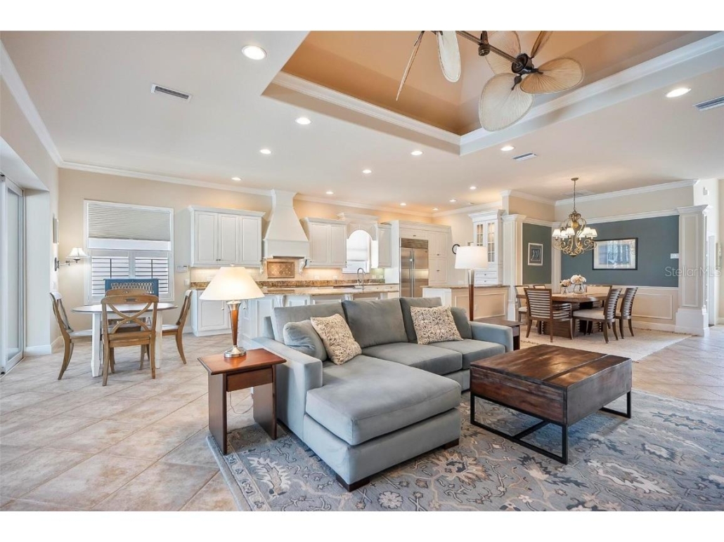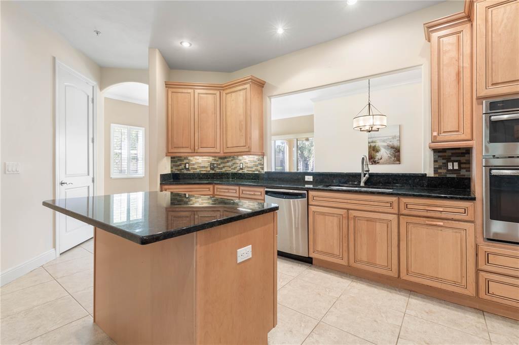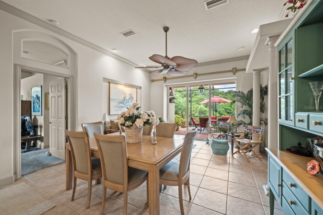 Directly off the living room is a lakefront screened lanai featuring the pool, an outdoor kitchen, a water feature and an eating area. Send me more about this home in Hammock Dunes!