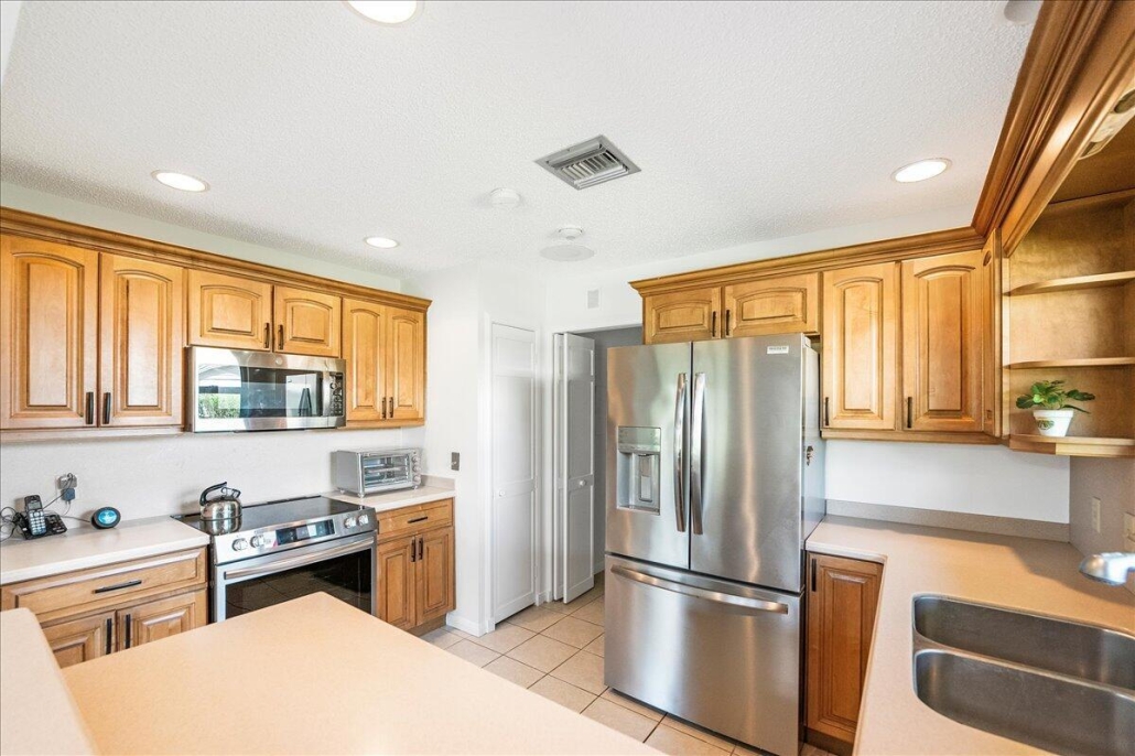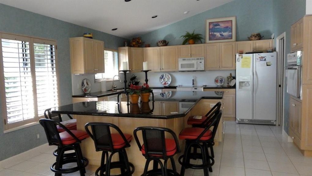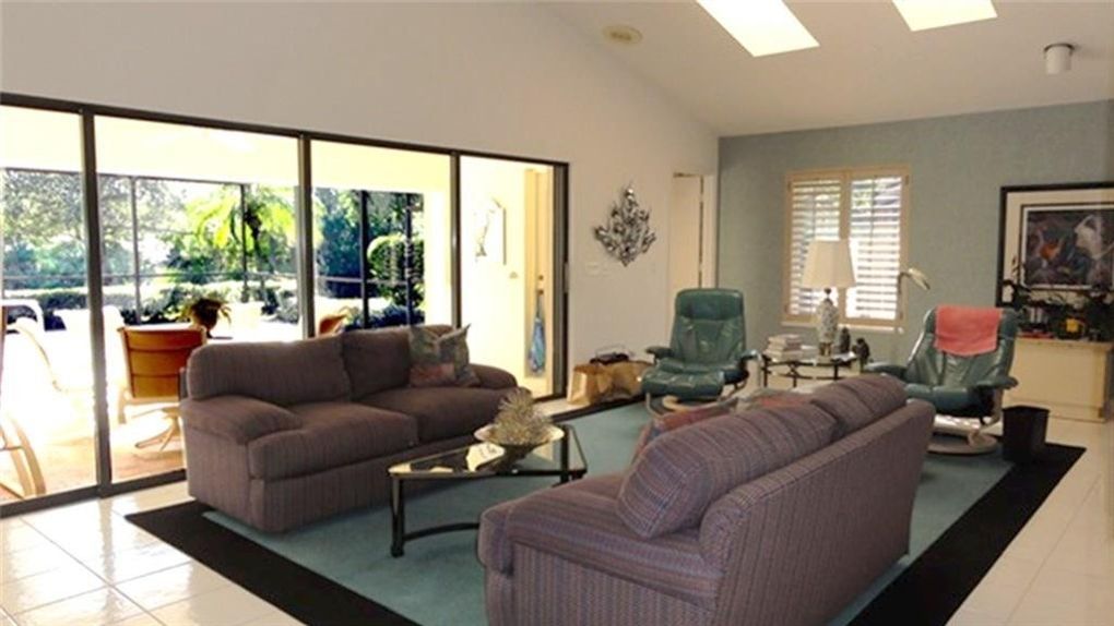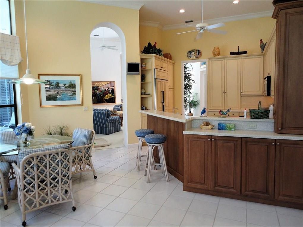 This 1,816-sf single-family home is located on a golf-view lot at 2102 NW Greenbriar Lane in Harbour Ridge Yacht & Country Club, FL.