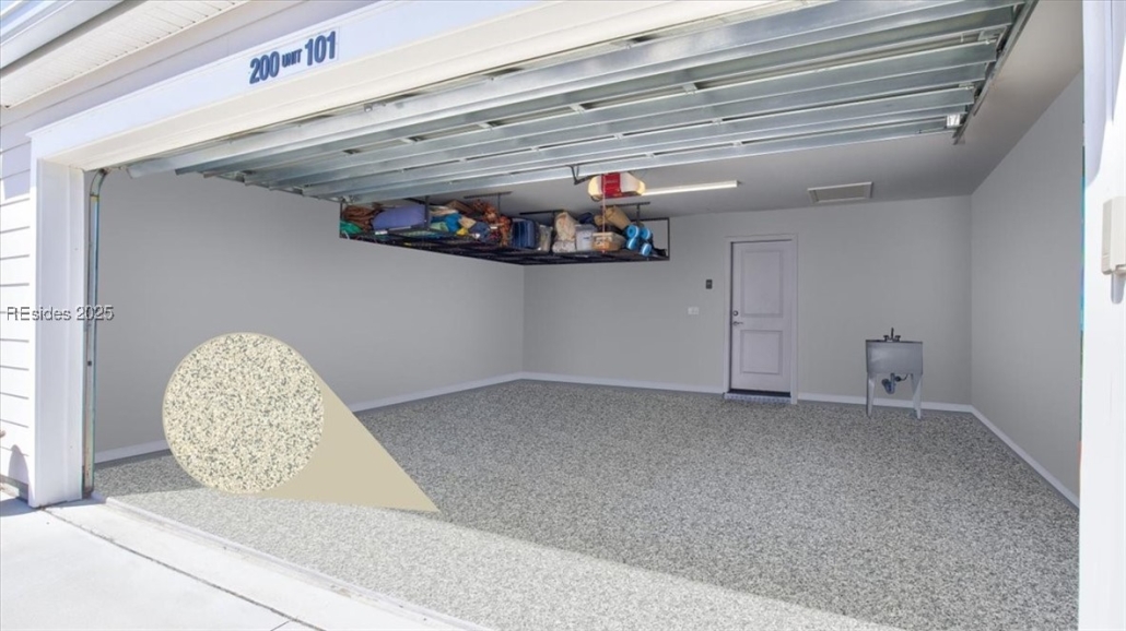 - Two-car garage with storage racks