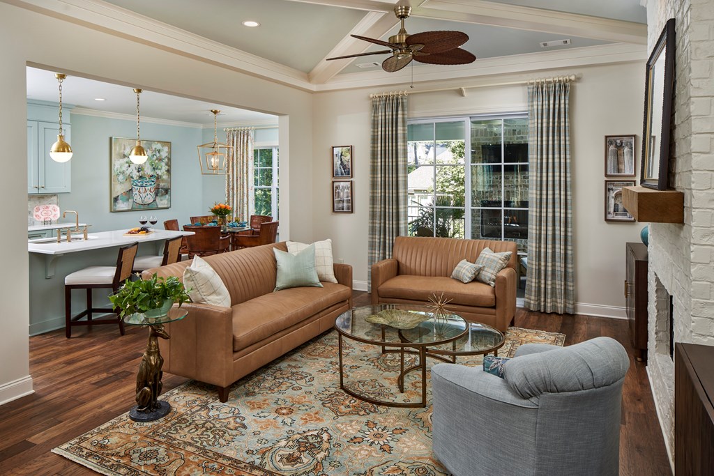 - Living room and breakfast room open to covered porch