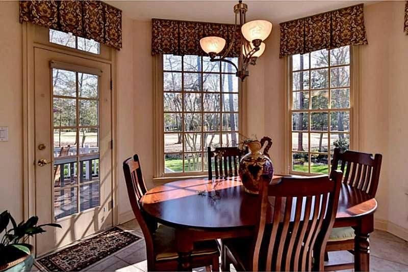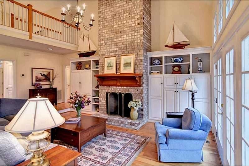This one-level home at 6660 Rexford Lane in Colonial Heritage, VA, blends open-concept living with traditional spaces, highlighted by a vaulted family room with custom built-ins.