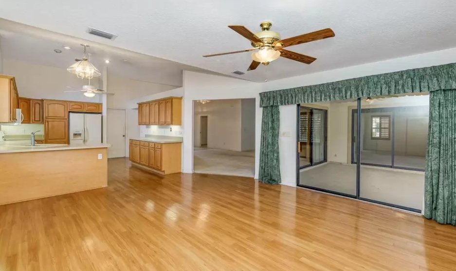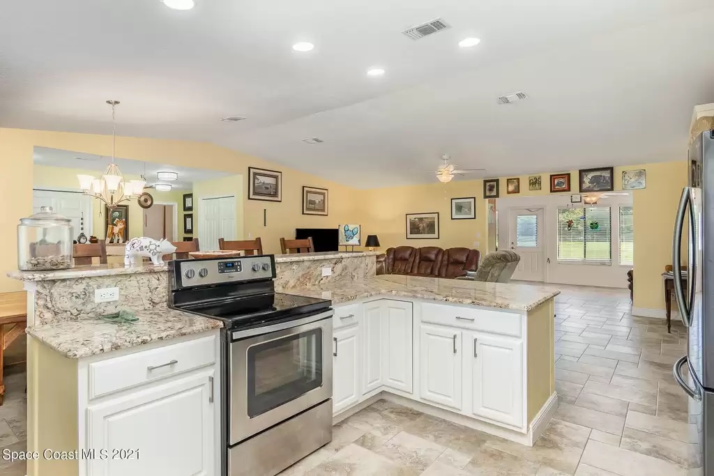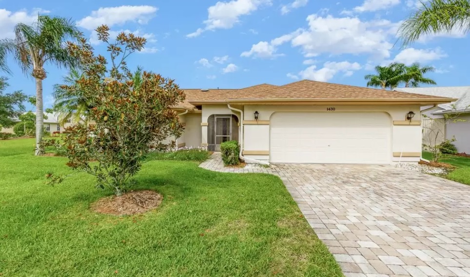 Along with single-level living, this residence features accordion shutters, vaulted ceilings, a bright open floor plan and a spacious owner’s suite.