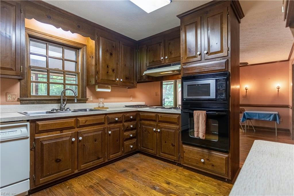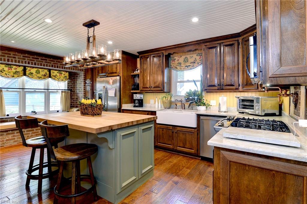 The home’s spacious kitchen includes a wood-burning fireplace.