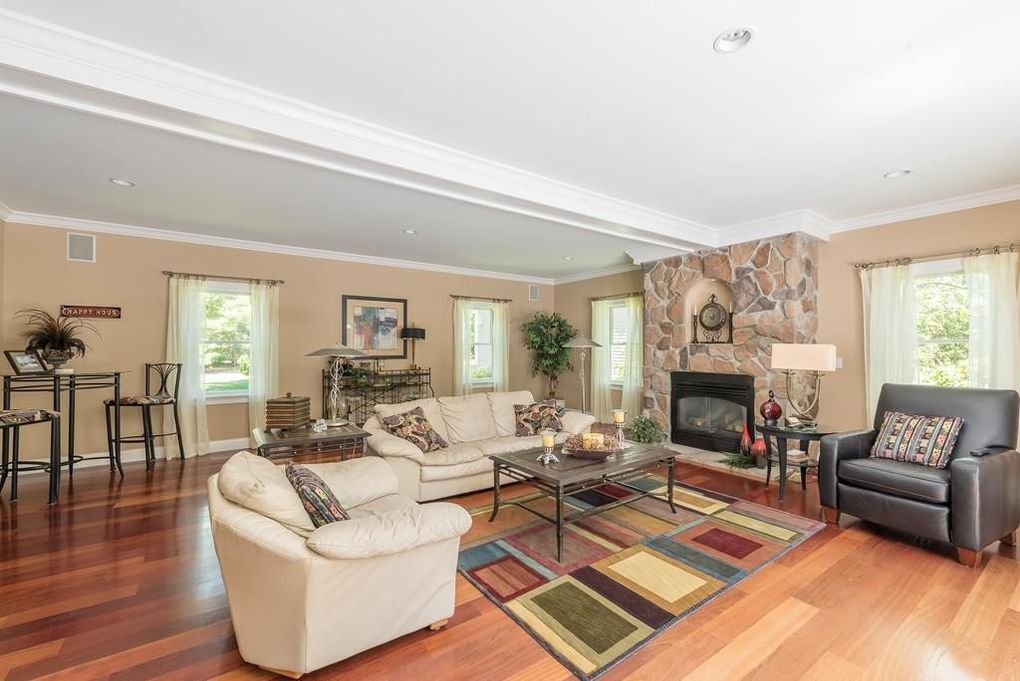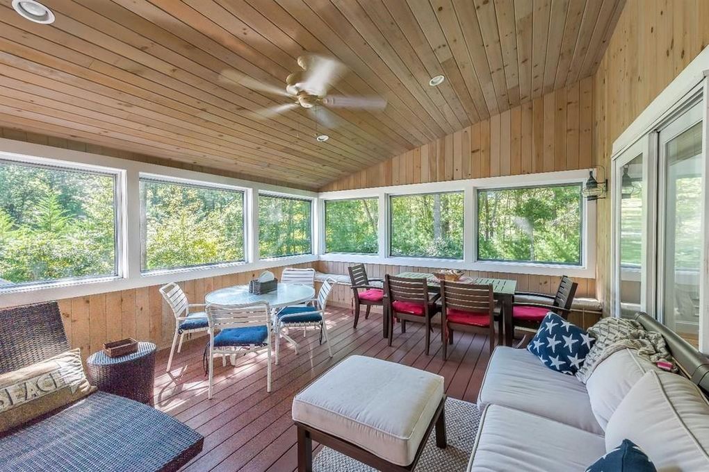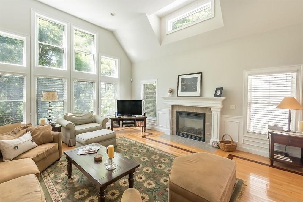 - Large great room with a grand fireplace gives onto south-facing deck