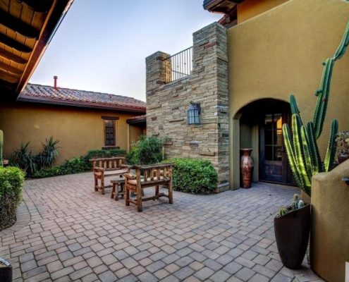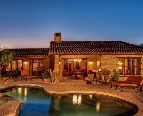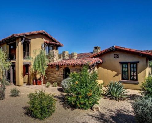 Tucked behind the gates of Mirabel’s desirable Bel Canto enclave is this intricately designed 3,386-sf estate home at 9886 East Allison Way. It is well-sited on a nearly one-acre homesite.