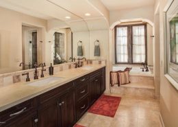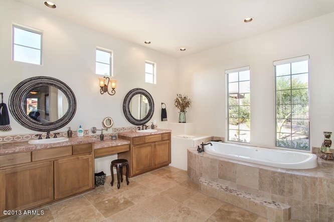 - Wall-length dual entry shower, multiple vanities, lounge-tub, private water closet