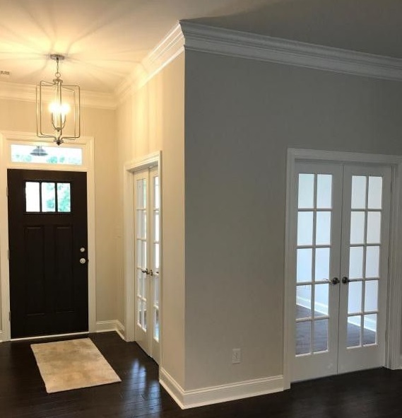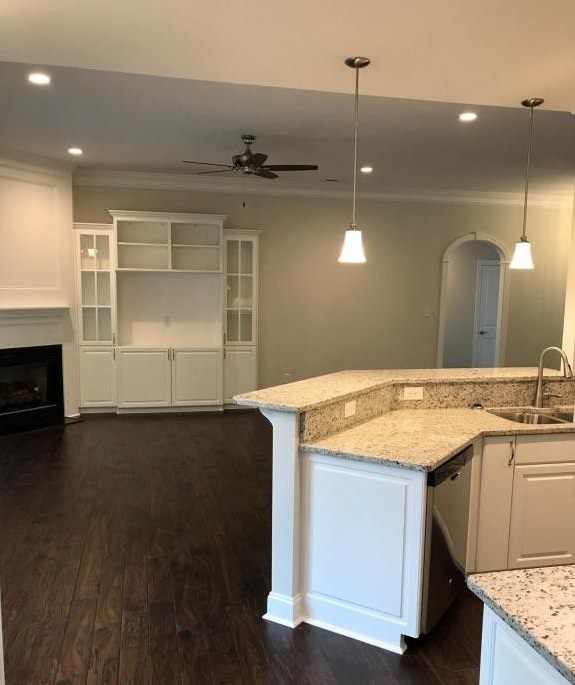 - Owner’s suite w/ plush carpet, tray ceiling, double crown molding, custom lighting