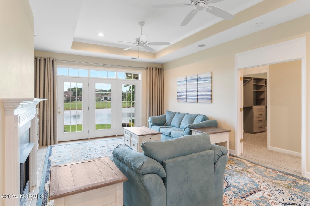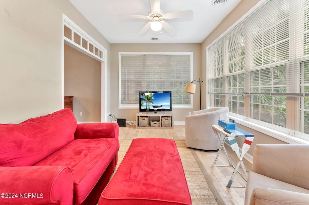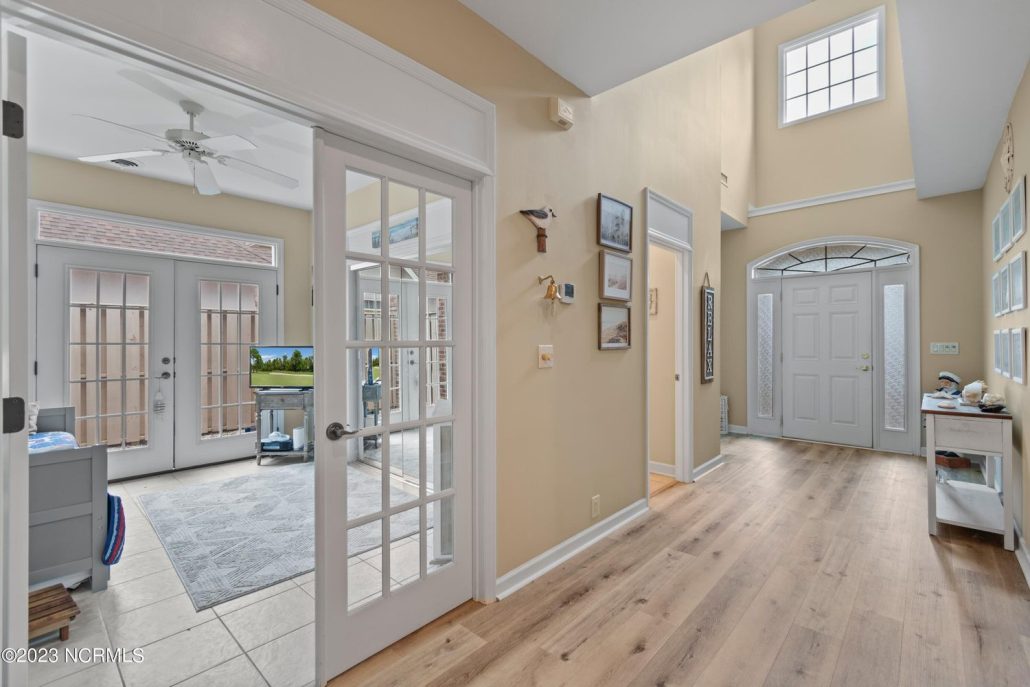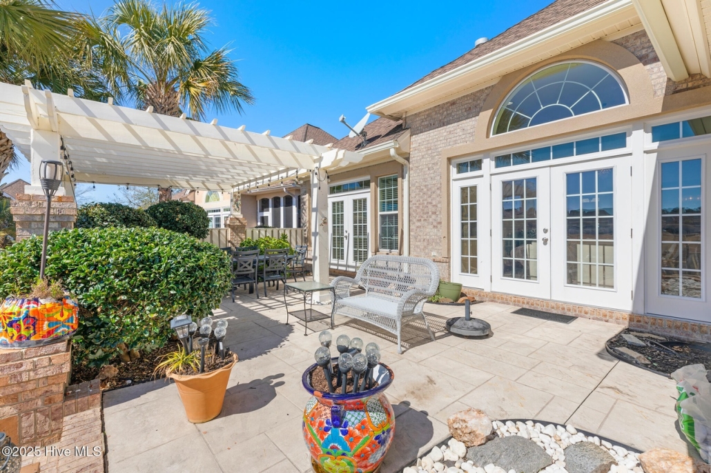 The owner’s suite has a walk-in closet and a bath with a double vanity plus separate tub/shower and French doors leading to the back patio. Send me more about this home in Ocean Ridge Plantation!