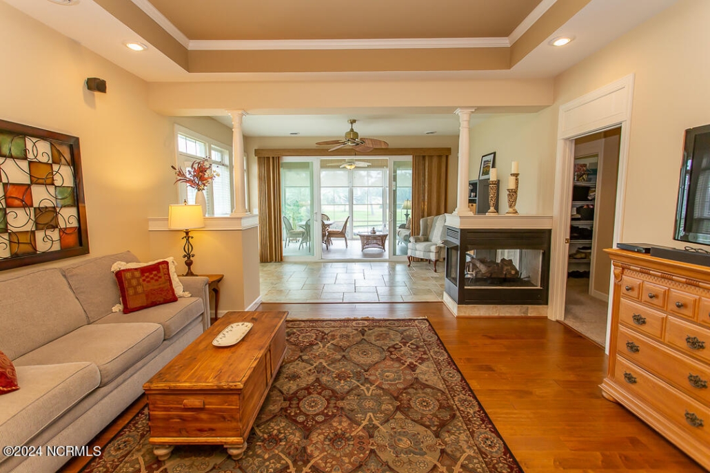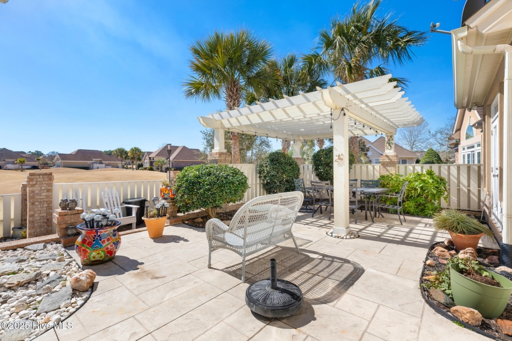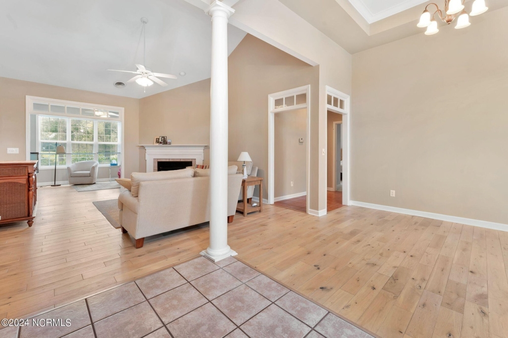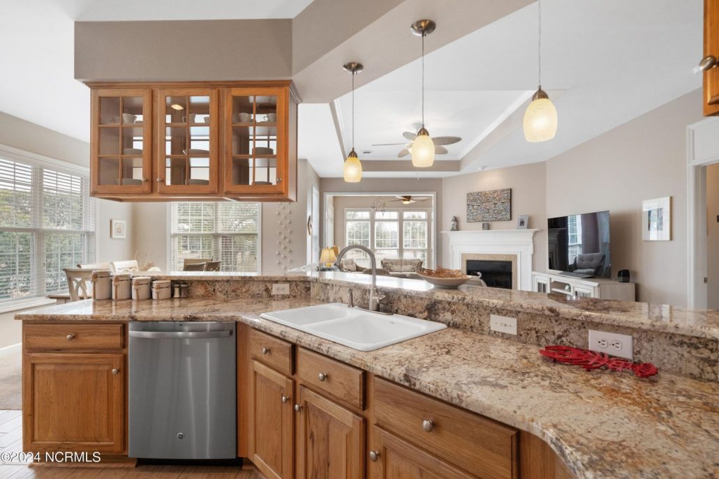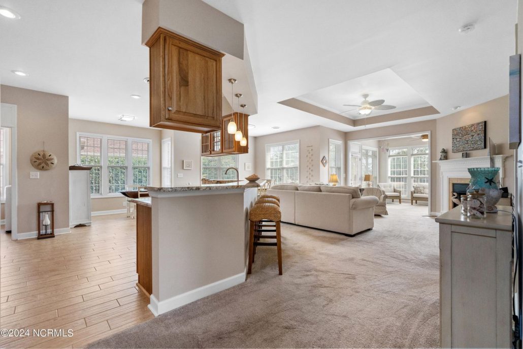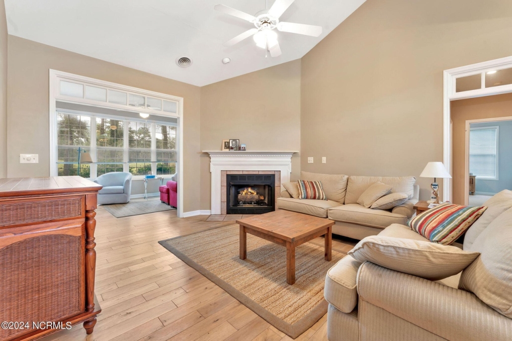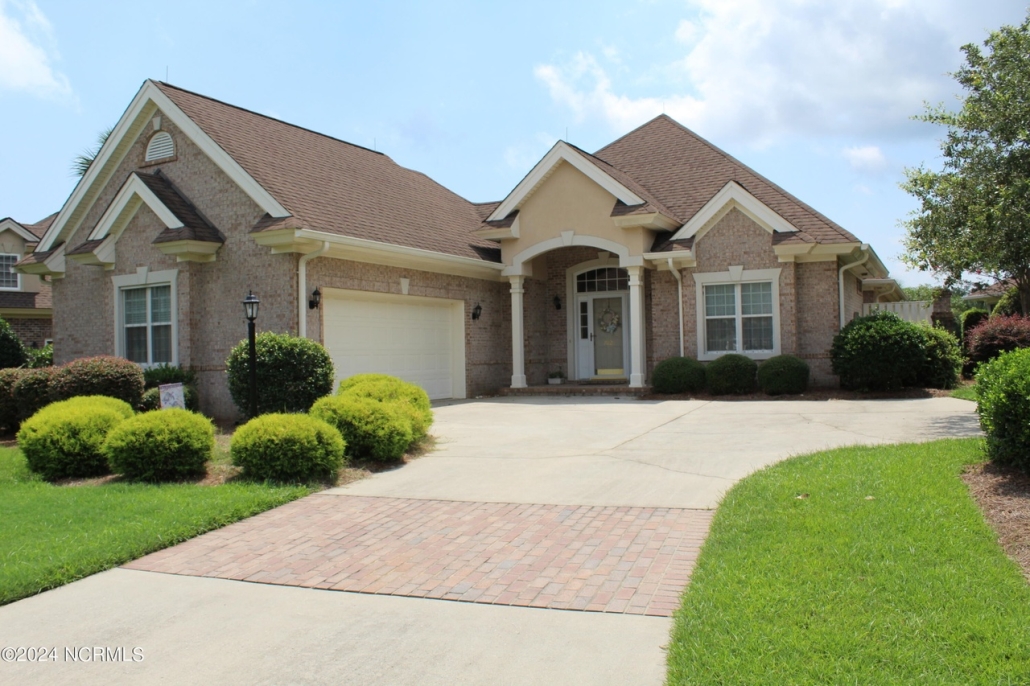 This 2,280-sf brick home at 6989 Rosebury Court on the golf course in Ocean Ridge Plantation has a split floor plan on one level and natural light throughout.