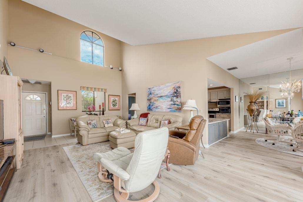 This 2,178-sf Golf Villa at 1606 NW Buttonbush Circle in Harbour Ridge Yacht & Country Club, FL offers refined comfort and effortless Florida living. The three-bedroom, 2.5-bath layout features expansive living areas that flow seamlessly to outdoor spaces.
