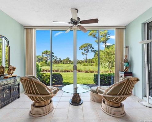 Covered lanais enjoy golf, water and nature views.
