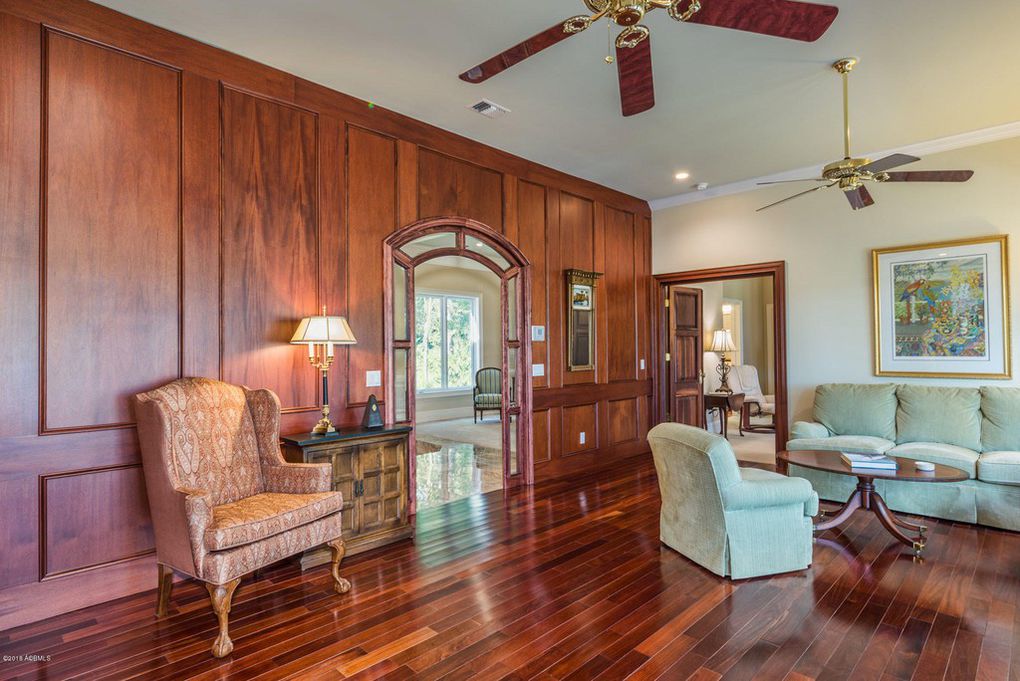 This Lowcountry-style home is set on the South Carolina coastal island of Callawassie. Located at 7 North Oak Forest Drive, it offers excellent views of the golf course’s signature, par-5, No. 8 hole.