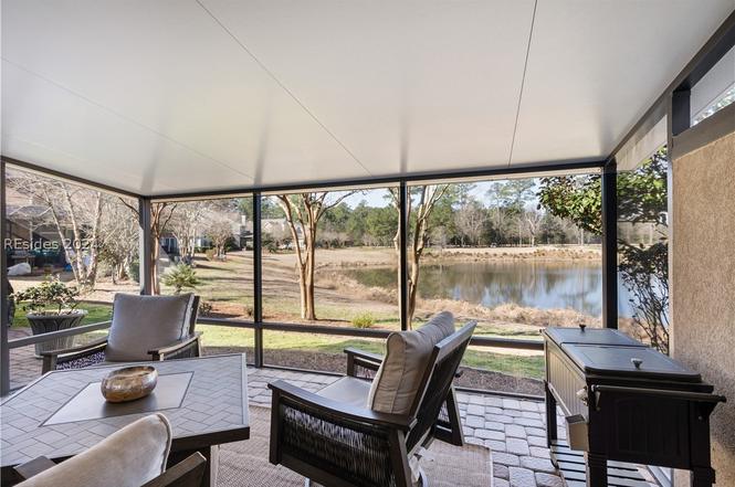 The home has a spacious screened porch with wooded views.