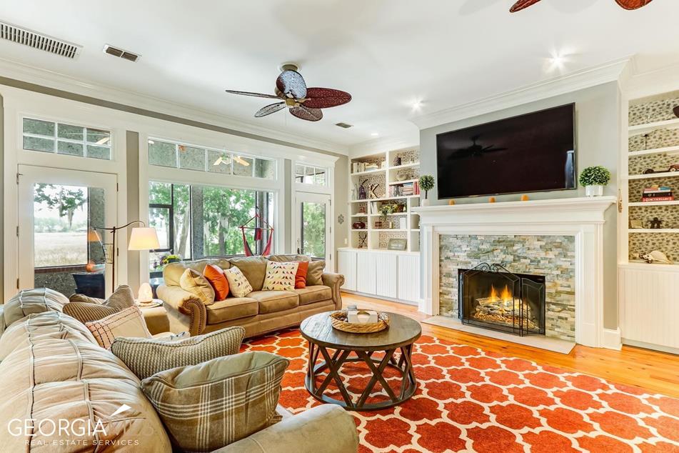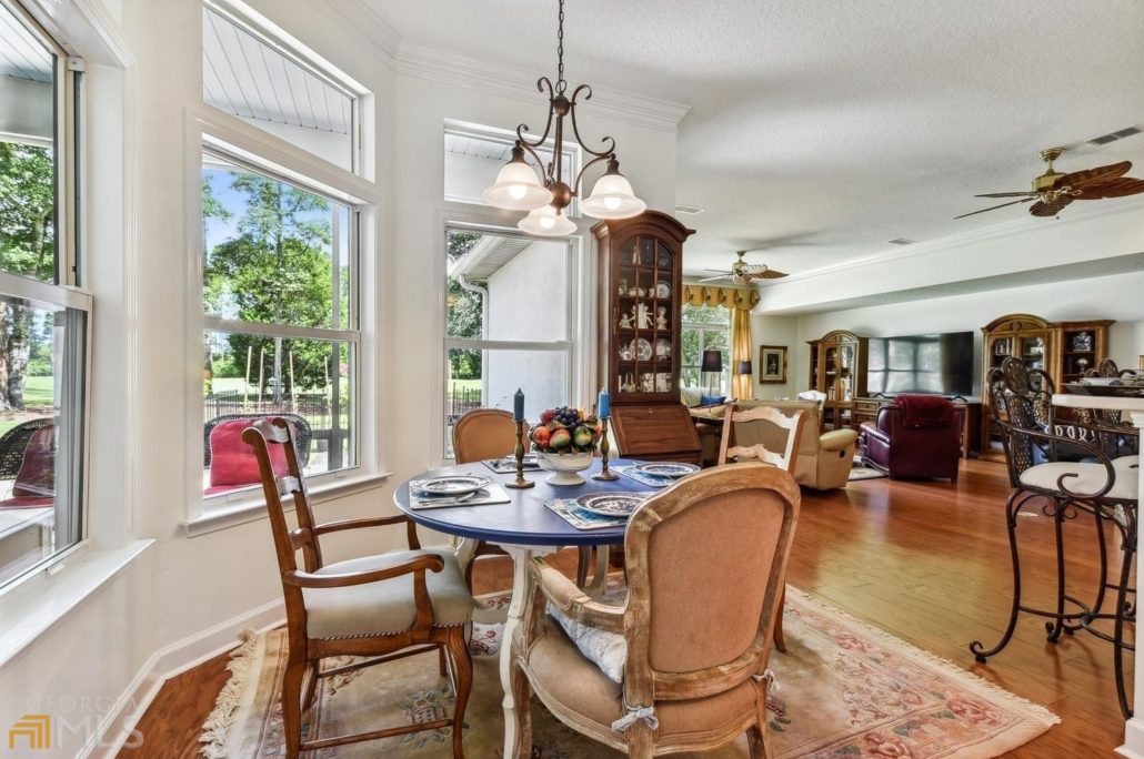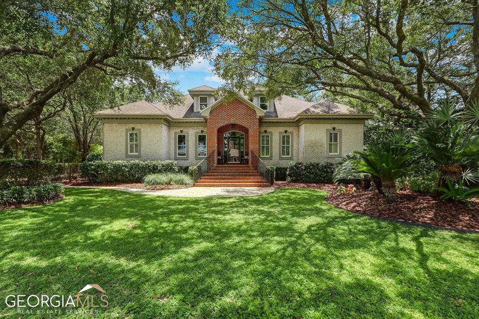 There are pleasing views of the 6th fairway from this 2,388-sf brick home at 535 Cardinal Circle East in Osprey Cove, GA.