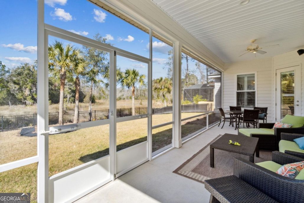 Outdoor living is highlighted by a screened porch plus an expansive screened entertaining patio, overlooking a landscaped yard.