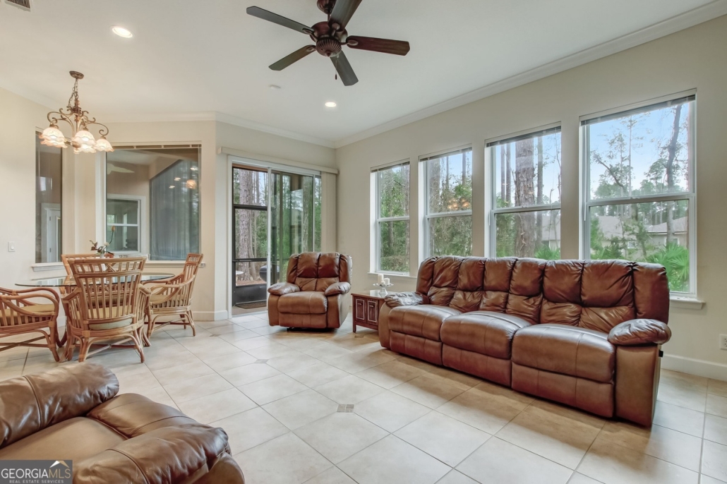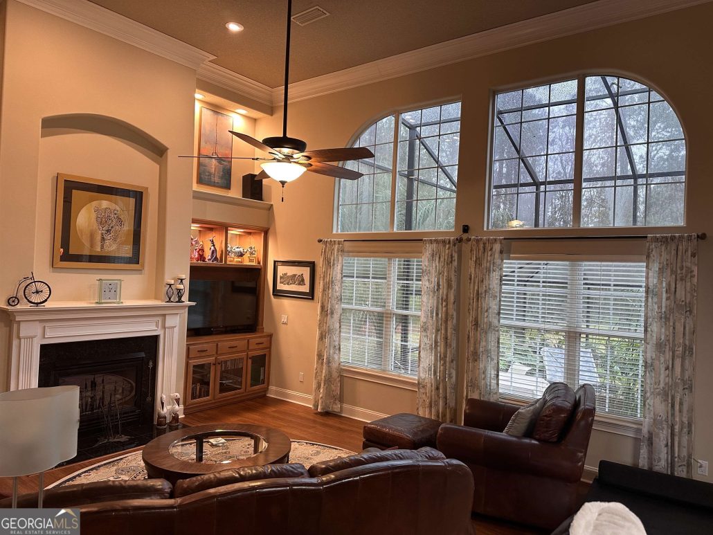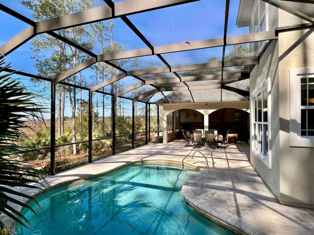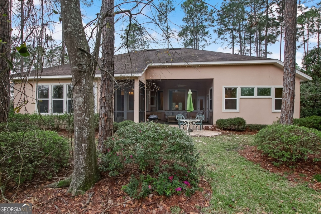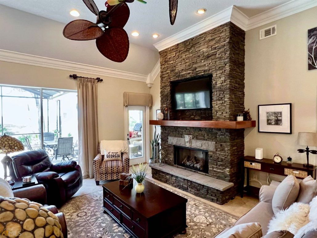 This classic stucco home at the rear of a private cul-de-sac at 285 Heron Court in Osprey Cove, GA offers 2,416 sf of living space on a .44-acre lot.