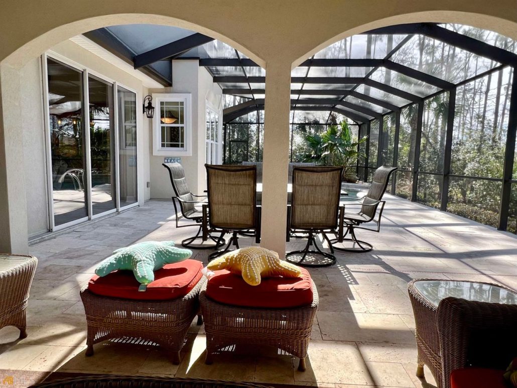 The home’s first-floor primary suite is on its own wing with direct access to a screened-in porch.