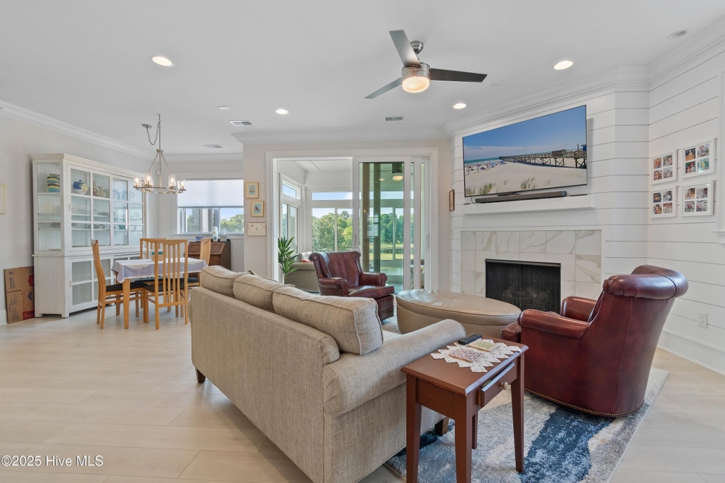 - Gas fireplace w/ built-in cabinetry