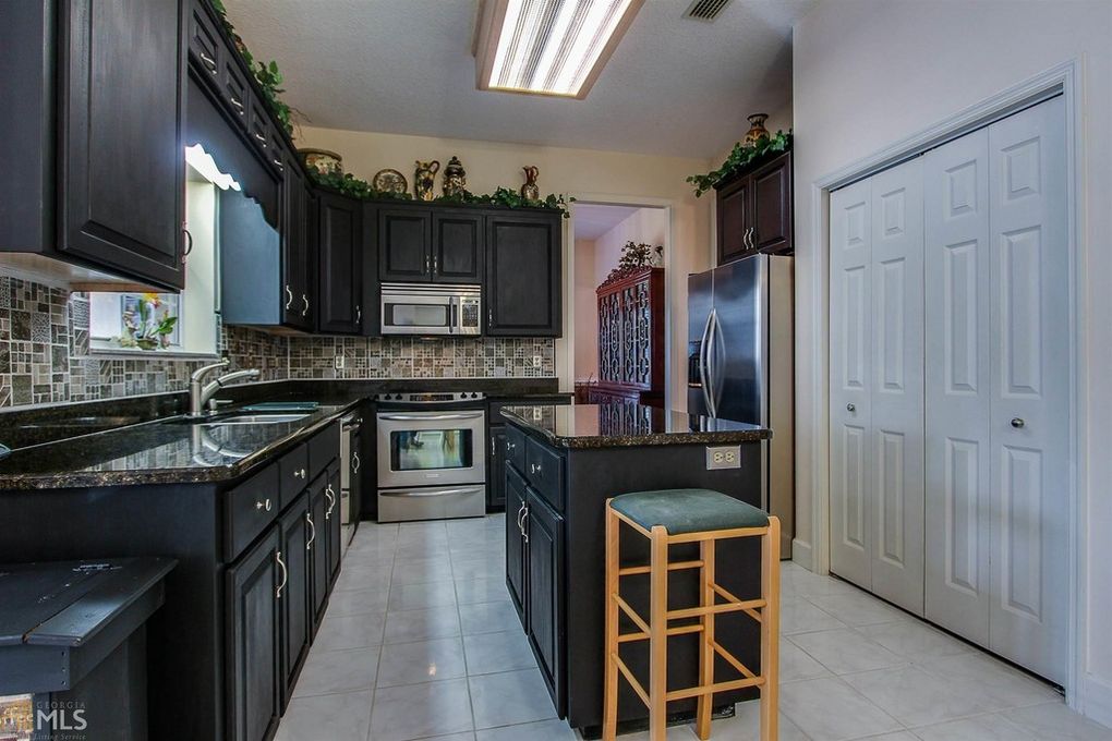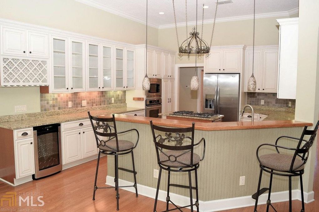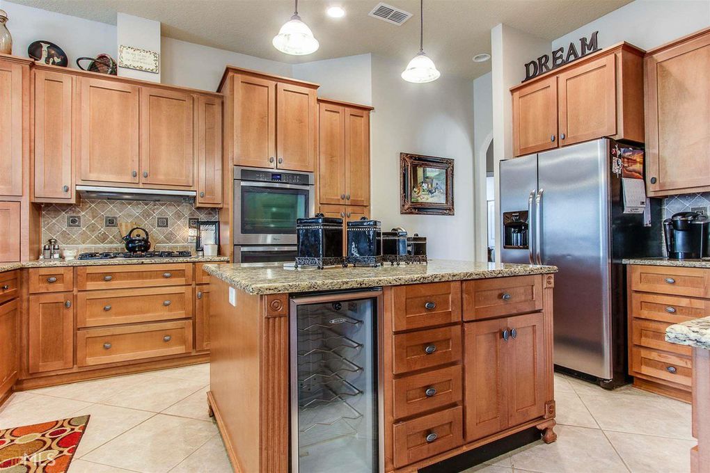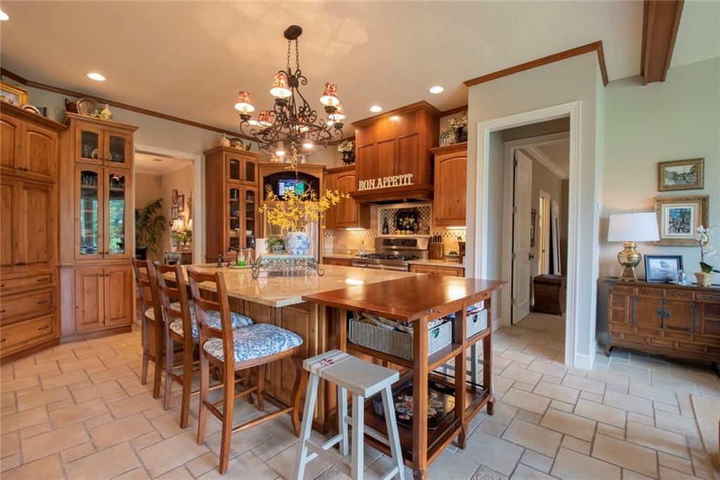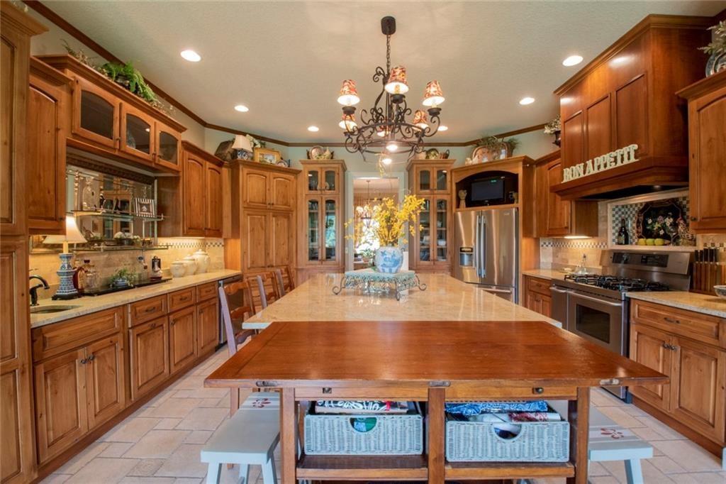 A gourmet kitchen is nicely outfitted with granite countertops, SubZero refrigerator and wet bar.