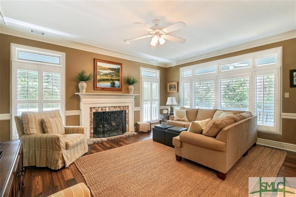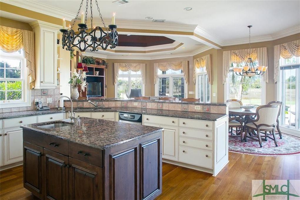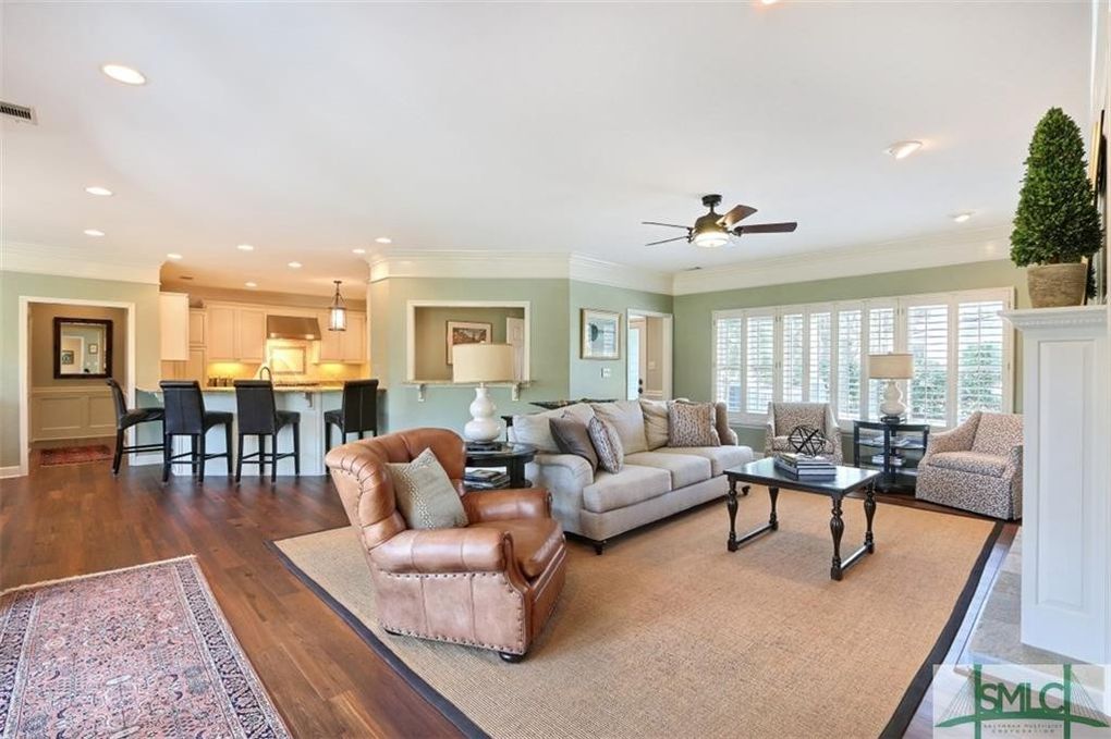 This 3,258-sf estate home at The Landings on Skidaway Island is located at 1 Tidewood Court and enjoys views of hole No. 13 on the community’s Deer Creek course. It was totally redesigned by John Mandrel and offers additional lagoon views from its screened porch.