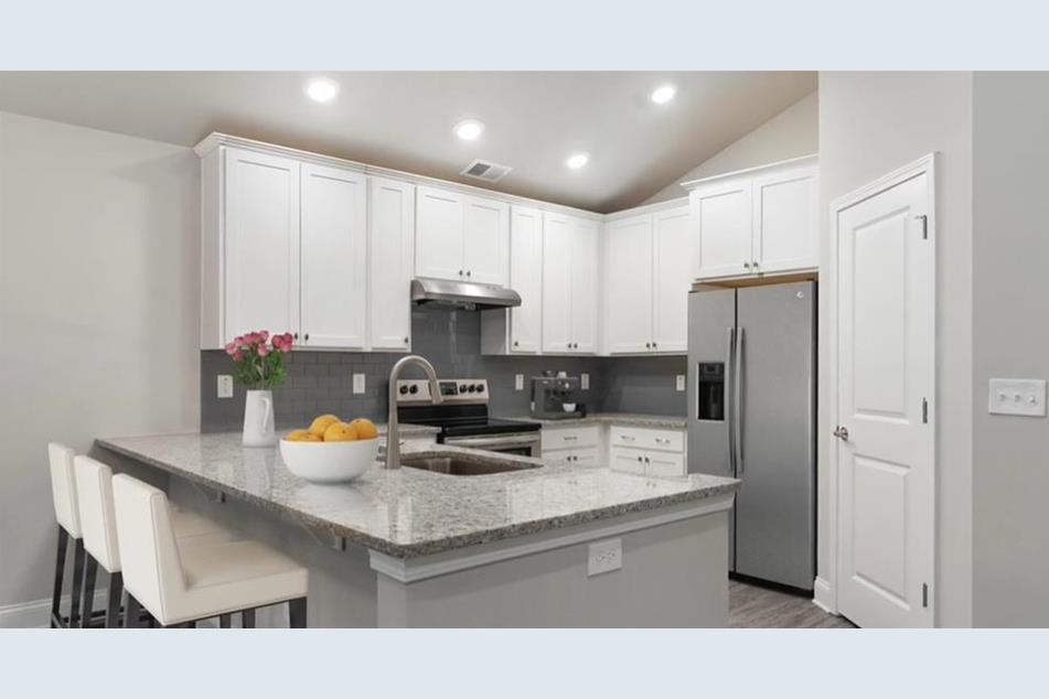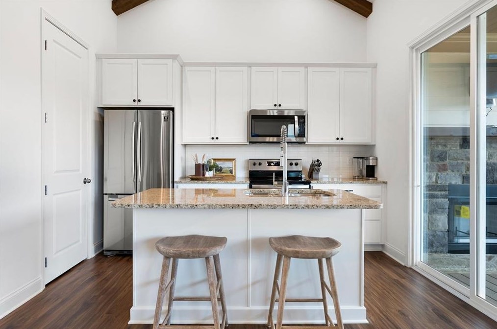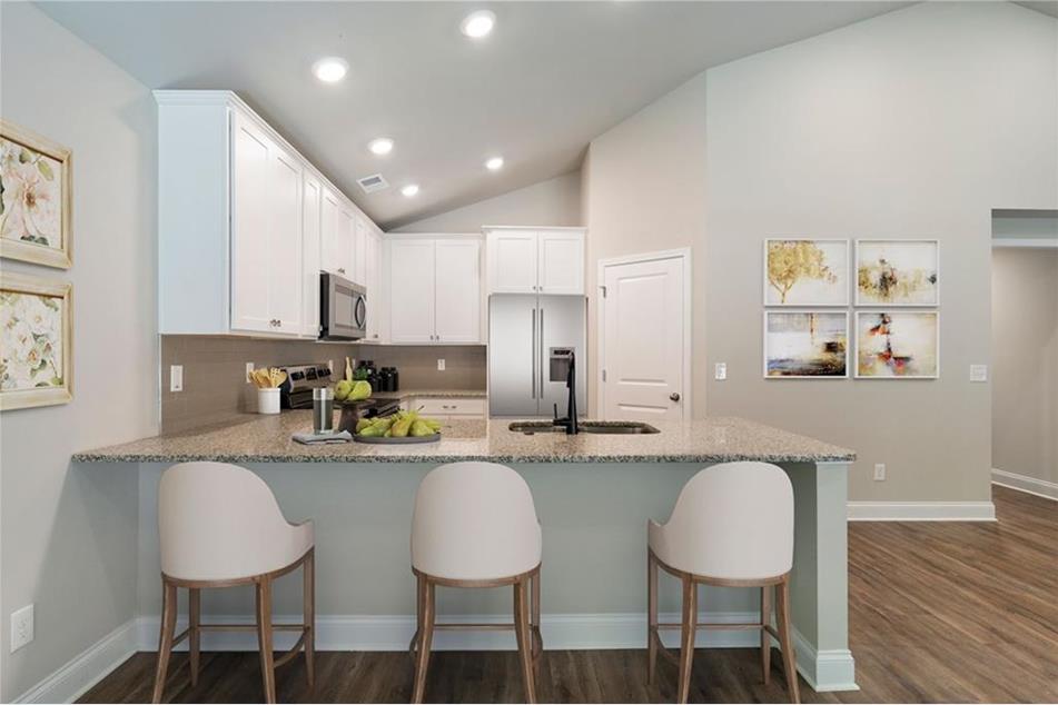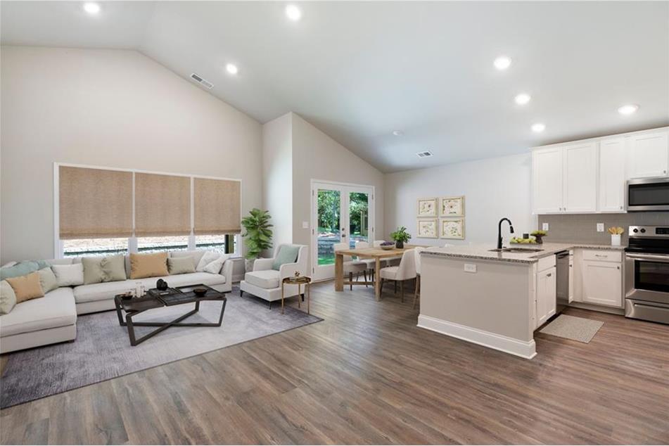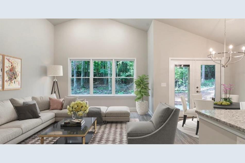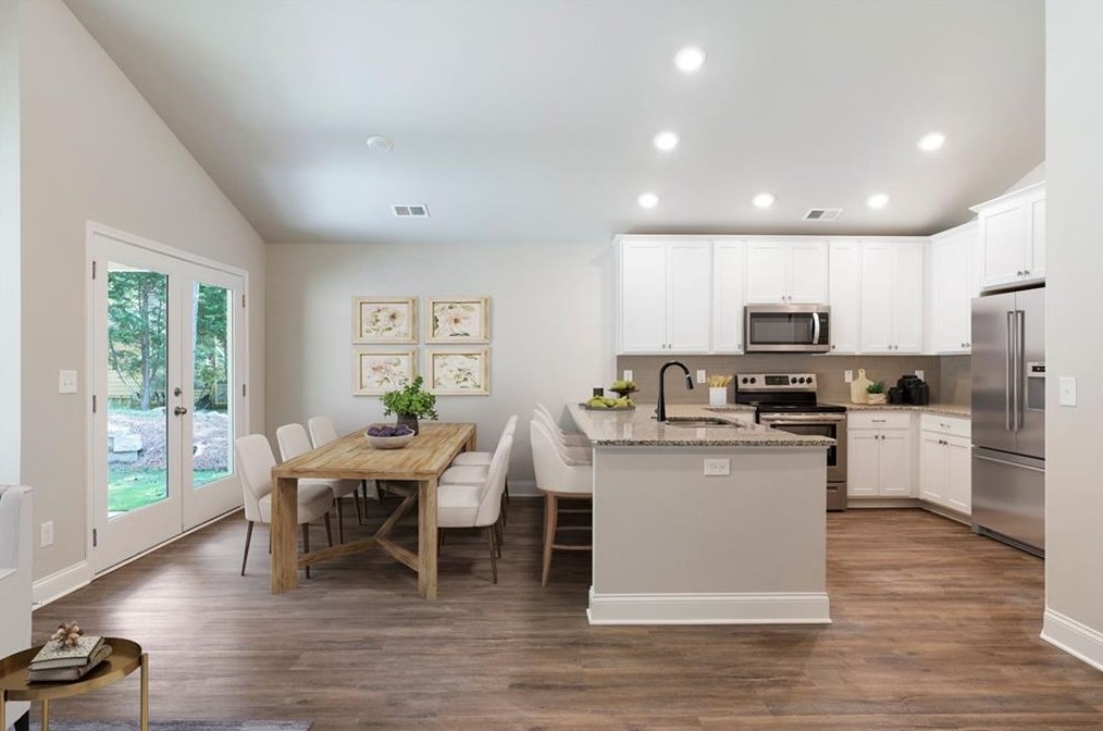 This new-construction single-story ranch home at 212 Red Cloud Landing in Lake Arrowhead offers two bedrooms and two baths on the main level with an optional bedroom and bath on the upper level.