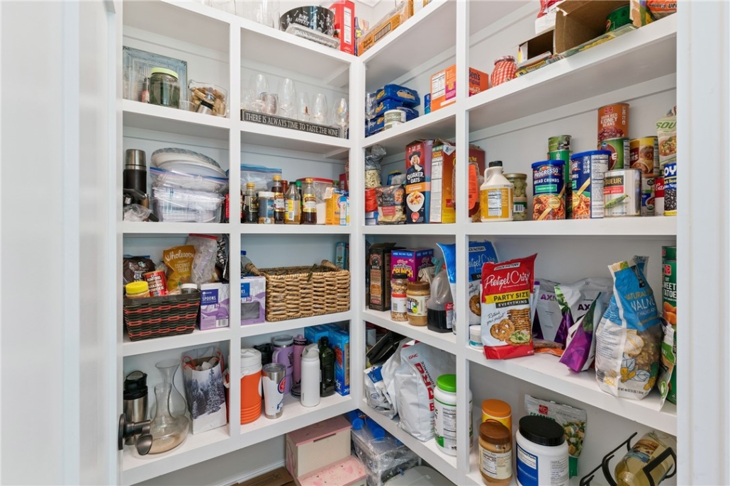 - Gas log fireplace and custom pantry