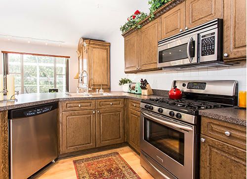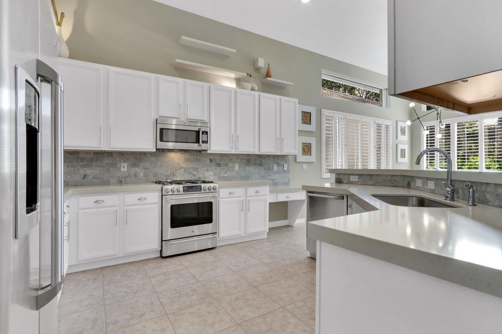 - Renovated chef’s kitchen w/ white stacked cabinets, oversized island, all new LG appliances