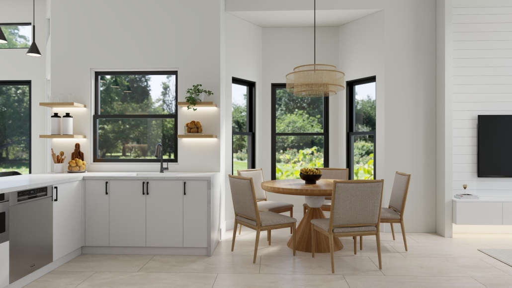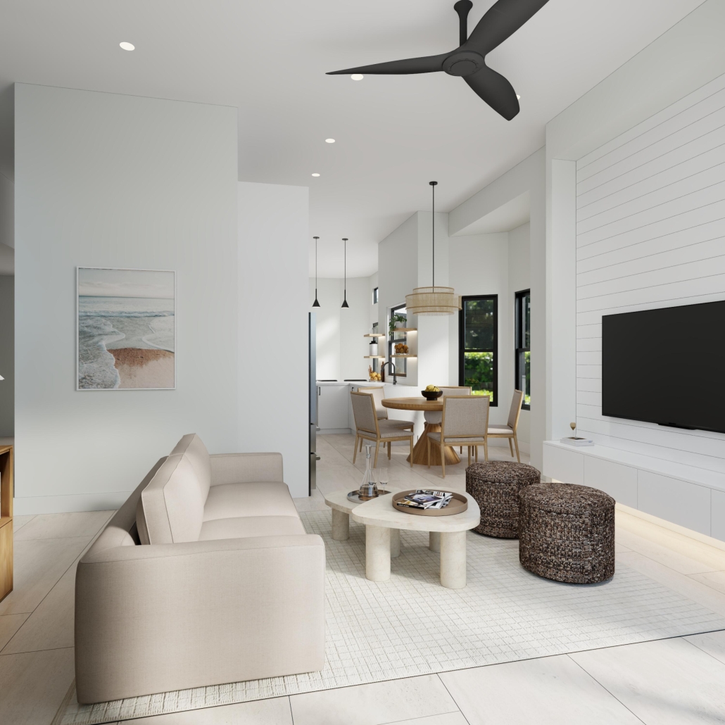 Open, light-filled and sophisticated in its design and decor, the home offers 2,410 sf of modern living space.