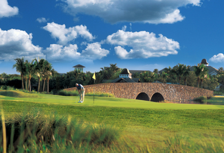 Gated community three Nicklaus-designed courses, clubhouse, fitness, spa, homes from $400,000
